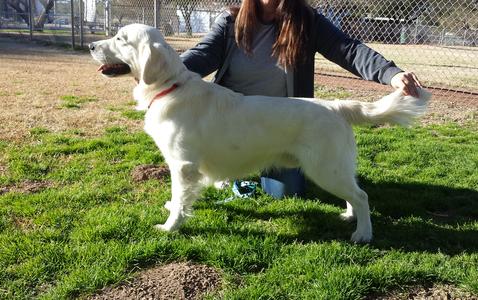 Lyric, has joined us from the Ukraine. We are honored to be entrusted and graced with such a beautiful girl. Sh'es a larger girl, usually around 80lbs, has gold highlights and is sweet as can be!